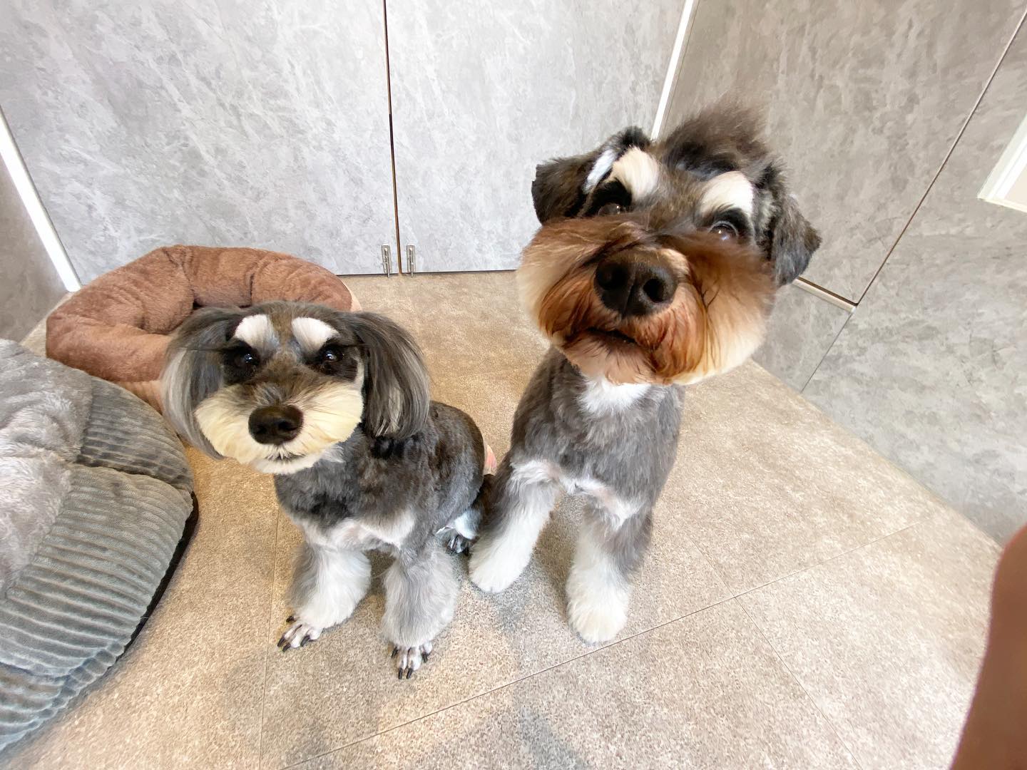 2023.01.09 ジジくんココちゃんコンビ? #シュナカット ジジくんココちゃんコンビ?毎月のトリミングでスタイルキープ?広角レンズで面白可愛く撮れました?♡#DogSalonLACQ#ドッグサロンラシク#LACQ#ラシク#大阪トリミングサロン#大阪ドッグサロン#阿波座トリミング#阿波座トリミングサロン#西区トリミング#西区トリミングサロン#大阪市トリミング#大阪市トリミングサロン#大阪#大阪市#西区#阿波座#中之島#靱公園#肥後橋#江戸堀#京町堀#犬#ミニチュアシュナウザー#シュナカット
