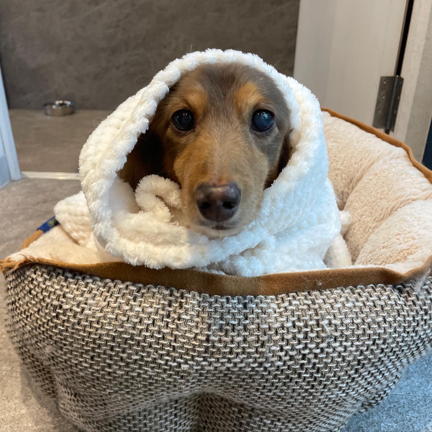 2023.02.27 夢々ちゃん?♡ #ダックスフンド 夢々ちゃん?♡いつもお迎え待ちの時はベッドで待機?シニアさんで美容中寝ることが増えたのでできる範囲で?♀️✨ングサロン#大阪ドッグサロン#阿波座トリミング#阿波座トリミングサロン#西区トリミング#西区トリミングサロン#大阪市トリミング#大阪市トリミングサロン#大阪#大阪市#西区#阿波座#中之島#靱公園#肥後橋#江戸堀#京町堀#犬#ダックスフンド